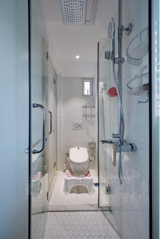 \u00A0 \u00A0\u00A0\u00A0 解決了房屋的格局問(wèn)題后,隨之而來(lái)的就是衛(wèi)生間的問(wèn)題。考慮到家中有年邁的老人以及剛出生的孩子,衛(wèi)生間使用的頻率極高,并且需求也有所不同。于是史南橋經(jīng)過(guò)精心策劃后,在僅有的空間內(nèi)為戶(hù)主“變”出了兩間衛(wèi)生間。一間就在老人的臥室門(mén)口方便其出入使用,另一間經(jīng)過(guò)巧妙設(shè)計(jì),再也不會(huì)出現(xiàn)上廁所和下廚不能同時(shí)進(jìn)行的尷尬,淋雨和馬桶之間安排了一扇門(mén),保證了干濕分離,當(dāng)大人想要為小寶寶洗澡的時(shí)候,又可以把門(mén)打開(kāi)擴(kuò)大空間。