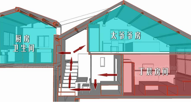 \u00A0\u00A0\u00A0 本著對(duì)生活不將就的態(tài)度,史南橋進(jìn)行了多次的考察,考量著幾代人不同的生活習(xí)慣和需求,尤其是幼兒的成長(zhǎng)過(guò)程中需要的空間。最終決定通過(guò)錯(cuò)層來(lái)擴(kuò)大空間,把原先的兩層擴(kuò)成了四層空間,不僅為每一代人打造了屬于自己的獨(dú)立臥室,將浴室和廚房分割為不同空間,更為小丁當(dāng)打造了屬于自己的小天地。