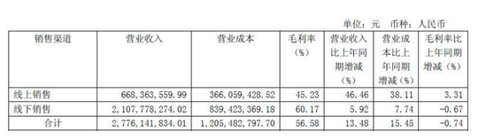 表2:報(bào)告期內(nèi)線上、線下銷售渠道的盈利情況