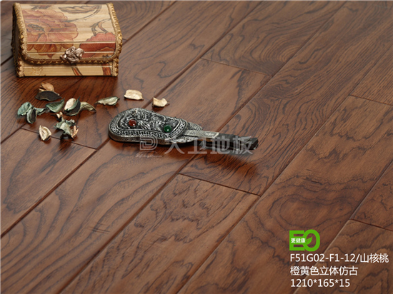 大衛(wèi)地板E0級(jí)北美風(fēng)尚多層實(shí)木復(fù)合系列:F51G02-F1-12 山核桃橙黃色立體仿古