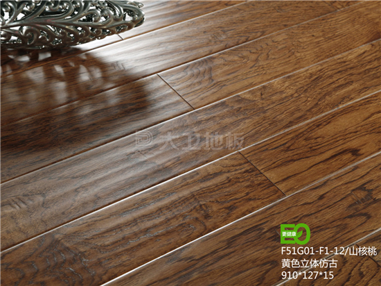 大衛(wèi)地板E0級(jí)北美風(fēng)尚多層實(shí)木復(fù)合系列:F51G01-F1-12 山核桃黃色立體仿古