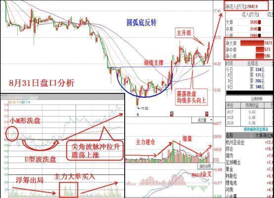 股價(jià)在底部企穩(wěn),形成“圓弧底”看漲形態(tài),其中持續(xù)放量,有主力吸籌建倉(cāng)痕跡。之后拉升突破頸線,強(qiáng)勢(shì)的橫盤震蕩洗盤,持續(xù)縮量證明獲利盤和套牢盤出局,籌碼穩(wěn)健度提高,并且提高市場(chǎng)平均成本。股價(jià)沒(méi)有在跌破頸線,可將主力高度控盤,保持成本最低的絕對(duì)優(yōu)勢(shì)。目前價(jià)量齊升,突破洗盤區(qū),macd金叉,均線多頭排列,說(shuō)明上漲趨勢(shì)形成,同時(shí)也發(fā)出了入場(chǎng)最佳時(shí)機(jī)的信號(hào)。主升浪有望開(kāi)啟!關(guān)于此股的后期走勢(shì)以及分析,稍后也會(huì)在專欄中公布出來(lái),對(duì)此方式有興趣的朋友可以到本人專欄中查詢。