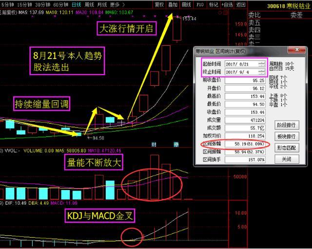 寒銳鈷業(yè)(300618)是本人8月21日專欄選出并發(fā)文講解的,觀點(diǎn)非常明確,提示非常及時(shí),選出之后一路大漲,目前漲幅超過(guò)了46%,當(dāng)然是本人專欄的粉絲,只要是及時(shí)看了專欄文章,學(xué)習(xí)了本人“趨勢(shì)選股法”的朋友,都是抓到了這波。想學(xué)習(xí)此類選股方式的粉絲朋友到本人的專欄查看,我都有詳細(xì)的講解,如果你看了,對(duì)個(gè)人選股能力肯定是有不小的提升。