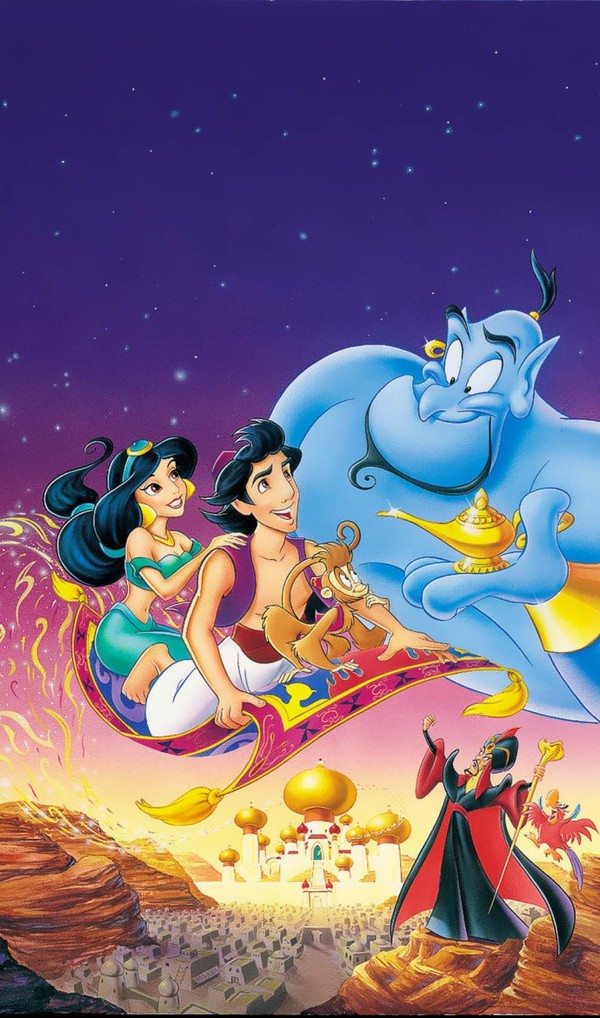 《阿拉丁》的故事取材于阿拉伯民間流傳的神話故事,講述了一個困在油燈中的精靈可以滿足人的三個愿望的故事。1992年動畫版的《阿拉丁》獲得了當年最高的票房,并且獲得了當年安妮獎最佳動畫和奧斯卡最佳歌曲獎。