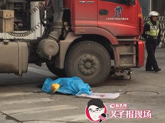 (原標(biāo)題:滬龍吳路轉(zhuǎn)彎槽罐車碾壓騎車人致死(組圖))