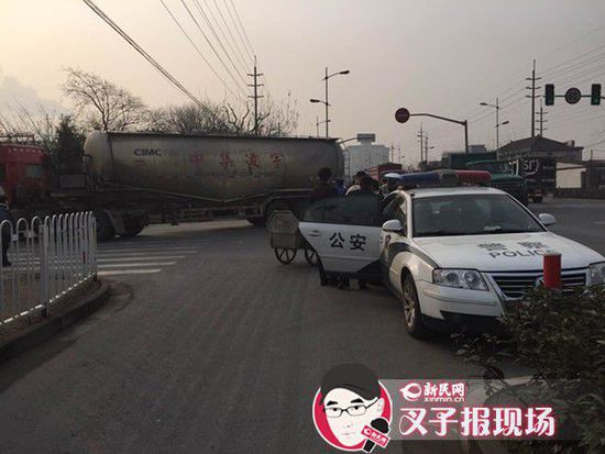 滬龍吳路轉(zhuǎn)彎槽罐車碾壓騎車人致死(組圖)