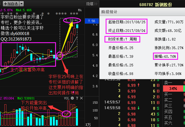 新鋼股份(002881)能可以看到,當(dāng)時(shí)股價(jià)反彈站穩(wěn)支撐線后進(jìn)入震蕩調(diào)整,我25號(hào)專(zhuān)欄選股分析后,股價(jià)一路的拉升截止目前已經(jīng)高達(dá)40個(gè)點(diǎn)以上,試想一下,如果你當(dāng)時(shí)能看到專(zhuān)欄中的選股法學(xué)會(huì)了,這一波收益你也能抓住了。如果你不是專(zhuān)欄的粉絲,當(dāng)然是抓不住的。添加宇軒微信:dy600018或QQ:3123691873