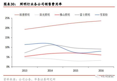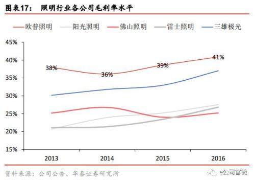 1,歐普照明是國(guó)內(nèi)LED通用照明市場(chǎng)龍頭; 2,LED照明行業(yè)正加速替代傳統(tǒng)照明,是一個(gè)快速增長(zhǎng)的千億市場(chǎng)。 3,歐普照明具有的核心優(yōu)勢(shì)為:順應(yīng)產(chǎn)業(yè)趨勢(shì),鞏固品牌與渠道優(yōu)勢(shì),提升運(yùn)營(yíng)與快速反應(yīng)能力。 報(bào)告還對(duì)比了歐普照明的產(chǎn)品與同類公司的售價(jià),以此說(shuō)明公司產(chǎn)品擁有較高的品牌溢價(jià)。 8月31日,華泰證券(行情601688,診股)也首次將歐普照明納入覆蓋范圍,這份題為《家居照明龍頭崛起,份額持續(xù)擴(kuò)張》的研究報(bào)告從多個(gè)角度對(duì)照明產(chǎn)品行業(yè)內(nèi)的公司進(jìn)行了對(duì)比。 其中,在今年一季度天貓?zhí)詫毶坛菬艟咝袠I(yè)的成交份額方面,歐普照明以8.6%高居榜首。 而且,其市場(chǎng)份額近年來(lái)也呈現(xiàn)不斷上升的趨勢(shì)。 在同行業(yè)上市公司中,歐普照明的收入規(guī)模也有著一定的領(lǐng)先優(yōu)勢(shì),毛利率更是大幅領(lǐng)先。 歐普照明銷售規(guī)模的領(lǐng)先優(yōu)勢(shì),與其持續(xù)的渠道建設(shè)和品牌推廣有關(guān),目前公司擁有國(guó)內(nèi)家居照明市場(chǎng)最大的經(jīng)銷商網(wǎng)絡(luò)。因此,其營(yíng)銷費(fèi)用率也遠(yuǎn)高于行業(yè)內(nèi)的其他公司。 而且,歐普照明銷售員工的薪酬也隨著品牌渠道建設(shè)的投入不斷上升。據(jù)華泰證券研報(bào)測(cè)算,2016年歐普照明共有銷售人員1799人,人均薪酬22.6萬(wàn)元/年,領(lǐng)先同行。 對(duì)于銷售人員數(shù)量的下降,主要是由于勞力派遣方式聘任的銷售人員轉(zhuǎn)為由經(jīng)銷商直接聘任。 近期原材料價(jià)格持續(xù)上漲,這是否會(huì)壓縮歐普照明的利潤(rùn)空間呢?早在今年1月份的一次機(jī)構(gòu)調(diào)研中,歐普照明就進(jìn)行了有針對(duì)性的解答。 問(wèn):成本對(duì)毛利率的影響。 答:成本對(duì)毛利率的影響并不是很大。現(xiàn)在的成本構(gòu)成中,影響較大的是電子元器件(主要是指銅和鋁)。其次是芯片。如果原材料價(jià)格上漲,我們可以通過(guò)調(diào)整品類結(jié)構(gòu)和銷售價(jià)格維持毛利率。 通過(guò)以上各大券商的研報(bào)和調(diào)研信息,我們可以大致梳理出歐普照明的亮點(diǎn)和優(yōu)勢(shì)。 不過(guò),公司股價(jià)走勢(shì)依然存在一些潛在的風(fēng)險(xiǎn),比如限售股解禁對(duì)股價(jià)的影響。公告顯示,8月21日,歐普照明迎來(lái)了上市后的第一次限售股解禁洪峰。 這14名股東合計(jì)持股3996.21萬(wàn)股,占解禁前公司流通股的68.9%,從而對(duì)公司短期股價(jià)走勢(shì)帶來(lái)較大的不確定性。