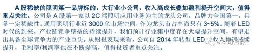 中信證券的報(bào)告還指出,(公司作為)A股稀缺的照明第一品牌標(biāo)的,大行業(yè)小公司,收入高成長(zhǎng)疊加盈利提升空間大,值得重點(diǎn)關(guān)注。