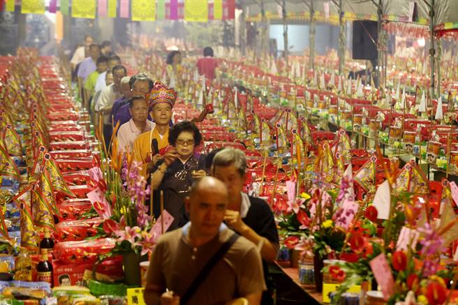 萬和宮今日舉行中元節(jié)普渡法會,廟方代辦普桌數(shù)多達1162桌,再度創(chuàng)新高;其中六成二,表明不領(lǐng)回,將轉(zhuǎn)贈慈善機構(gòu)及南屯區(qū)低收入戶。(黃國峰攝)