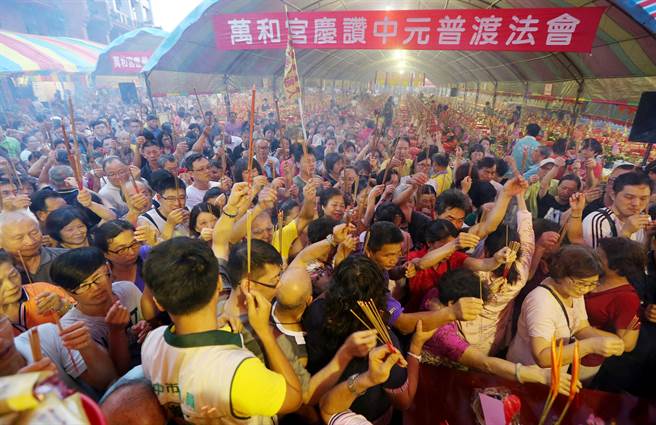 萬和宮今日舉行中元節(jié)普渡法會,熱情信眾,依次到座臺前爐、大士爐、甘霖大帝、地基主爐及孤魂爐參拜。(黃國峰攝)
