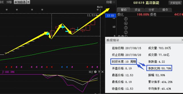 在圖中我們可以看到,嘉澤新能是本人在15號(hào)在朋友圈中發(fā)文講解,可以看到該股跌至底部8.10之后呢,開始在底部震蕩洗盤,清洗套牢盤。在講解當(dāng)天出現(xiàn)金叉信號(hào),量能放大,主力資金大量流入。在今天也是再次沖擊漲停,截止目前,漲幅也是達(dá)到了50.78%,如果有查看朋友圈學(xué)會(huì)了此戰(zhàn)法的粉絲朋友,那么我相信是不是也可以通過此選股法選出此類牛股呢。相信那些持續(xù)關(guān)注本人,學(xué)習(xí)了本人一分鐘選股選股法的朋友也是這波機(jī)會(huì)抓在手中了。后期的操作策略本人會(huì)持續(xù)的在朋友圈更新,大家注意及時(shí)查閱。