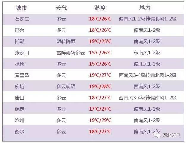 今天白天,張家口、承德西部、保定西北部和邯鄲多云轉(zhuǎn)陰有小雨,其他地區(qū)多云。