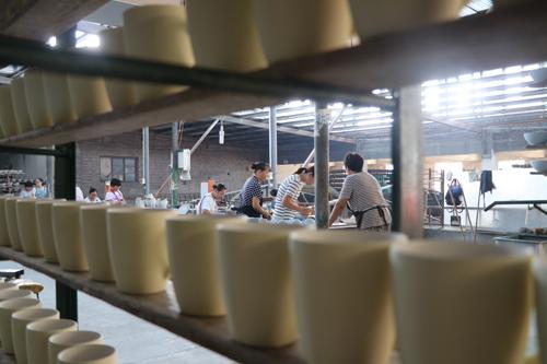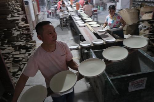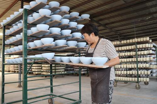 我市正在大力傳承和弘揚以絞胎瓷為代表的陶瓷文化,積極推動陶瓷產(chǎn)業(yè)發(fā)展,持續(xù)提高絞胎瓷、黑陶、天目瓷等的影響力和吸引力。近日,記者來到一家位于中站區(qū)西張莊的一家村辦陶瓷廠采訪,看到生產(chǎn)線十分忙碌。該公司主要生產(chǎn)炻瓷,年生產(chǎn)量1200萬件,企業(yè)一年產(chǎn)值3000多萬元,安排附近村莊280多人就業(yè),產(chǎn)品出口歐美市場。繼續(xù)做好焦作陶瓷行業(yè)的傳承與發(fā)展,健全創(chuàng)新人才培養(yǎng)等各種長效機制,大力推動焦作陶瓷文化旅游,提高知名度,擴大生產(chǎn)規(guī)模,增強市場開拓能力是我市陶瓷發(fā)展中面臨的問題。