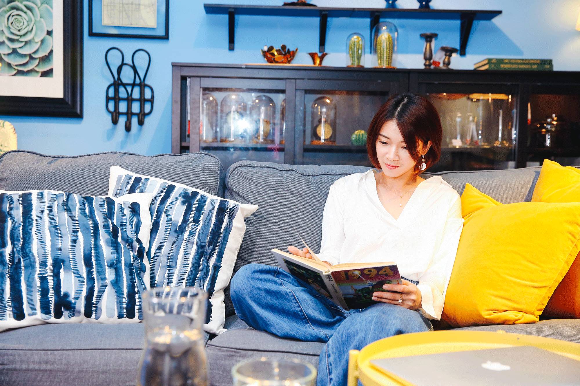 ??Tips:相比擺拍,像這樣在客廳里看書的照片會更自然!▼