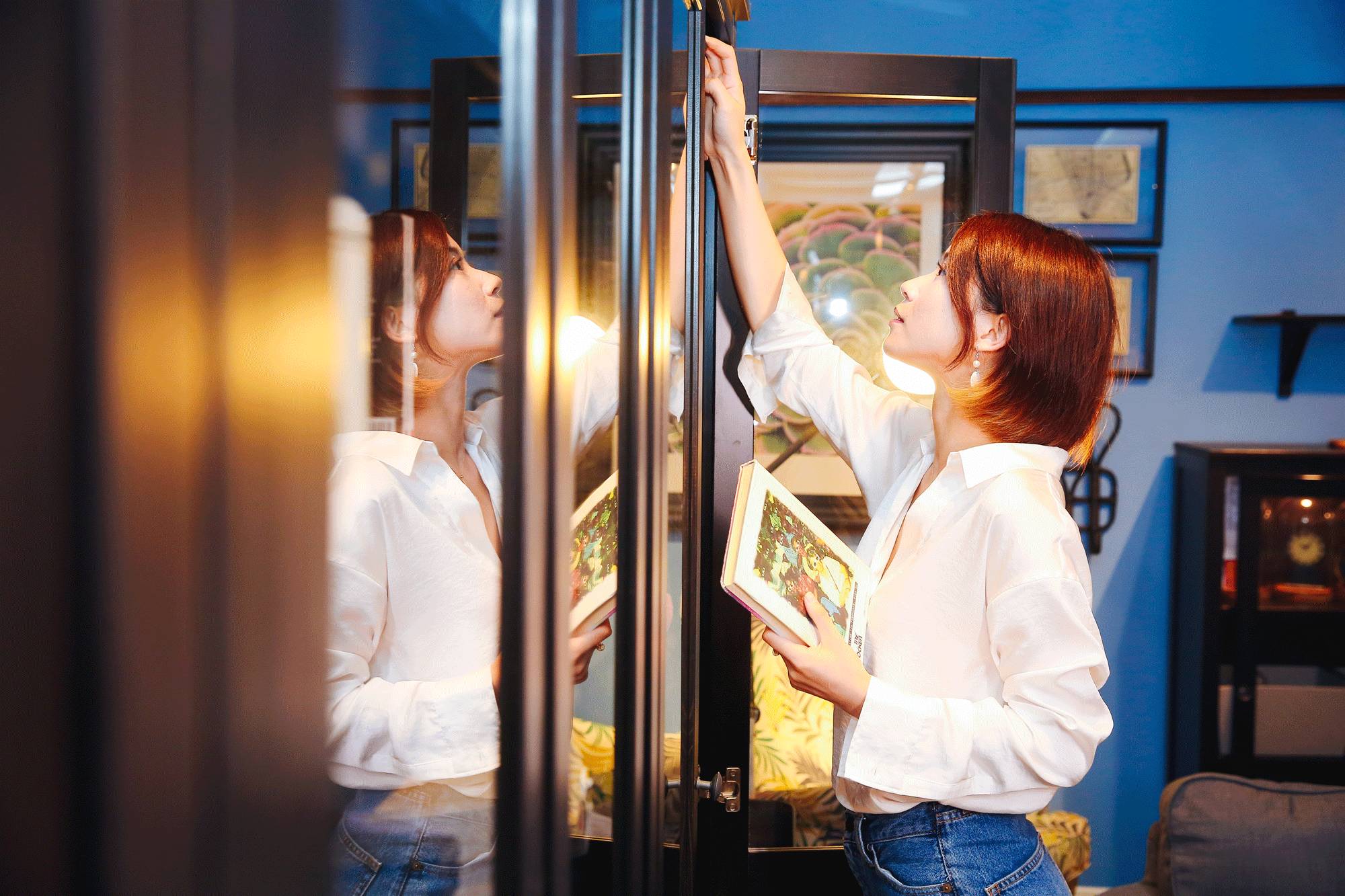 ??Tips:像這樣拍書柜上的倒影會讓畫面更豐富▼