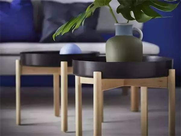 帶黑色托盤的茶幾,托盤不僅能防止東西掉下來,還能端起來拿著走。