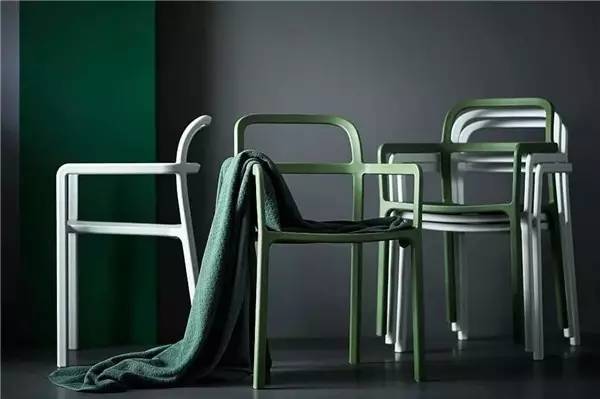 整把椅子采用注塑模具打造,把液態塑料一次性注滿,成型只要30秒,可以當成餐桌椅。疊起來的設計也能節省下不少空間。