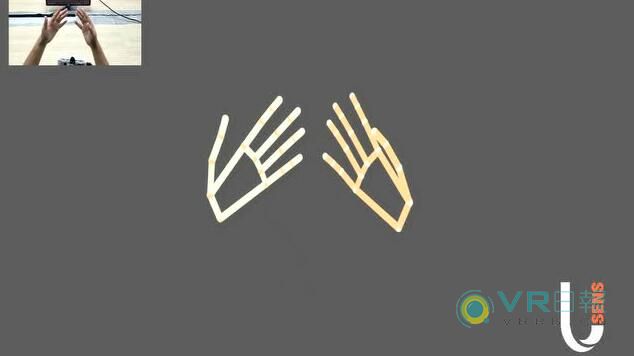 uSens凌感今日發(fā)布全新Fingo SDK,在手勢(shì)算法底層進(jìn)行了改進(jìn),新增一系列雙手交互動(dòng)作,如握拳、手心寫字、十指交叉等,在同類產(chǎn)品中,實(shí)現(xiàn)對(duì)大面積遮擋的雙手交疊類手部動(dòng)作的識(shí)別,并可實(shí)現(xiàn)對(duì)十個(gè)手指的靈活細(xì)微運(yùn)動(dòng)的追蹤。Fingo集成軟硬件為一體,硬件上通過兩個(gè)紅外攝像頭及三個(gè)紅外輔助燈追蹤手部動(dòng)作,軟件上基于計(jì)算機(jī)視覺及深度學(xué)習(xí)等算法,實(shí)現(xiàn)對(duì)雙手骨骼的識(shí)別。