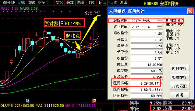 像此種類型的牛股還是很多的,就比如近期用此方法選到的安陽鋼鐵也是漲幅非常不錯的,一起來看下