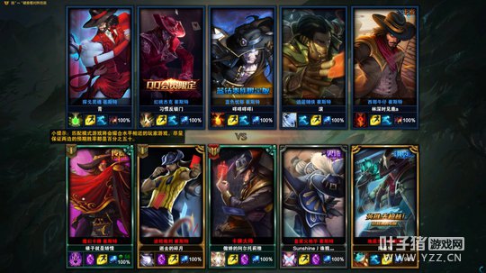 我們可以看一下,這個還是比較難聚齊的一個皮膚,要知道雖然說卡牌的皮膚都不算是特別的稀有,但是有一些是古老的皮膚,被下架了。只能通過抽獎才有一定幾率去獲得,這個只能是群內開黑才能聚齊的一個畫面了,否則的話,不能看到這樣的皮膚畫面的。