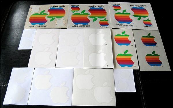 上圖是\u00A0一個愛好者收集的蘋果\u00A0logo\u00A0貼紙。