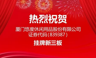2016年10月20日,廈門悠度休閑用品股份有限公司成功掛牌新三板,有望成為首家提供“露營(yíng)服務(wù)”的掛牌公司。證券簡(jiǎn)稱:悠度股份,證券代碼:839387,由國(guó)金證券主辦,致同會(huì)所審計(jì),福建君立律所顧問(wèn)。