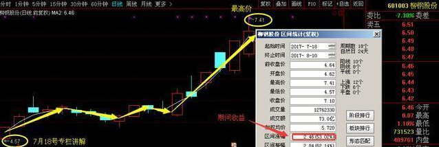 在7月27號晨陽在專欄用三板斧選股法給大家講解,當(dāng)天K線形態(tài)呈現(xiàn)紅三兵走勢,講解完之后,一路飆升,13個(gè)交易日,33個(gè)點(diǎn)的收益,這也是你關(guān)注了晨陽專欄學(xué)習(xí)的朋友們可以獲得的利潤空間,后期具體操作策略我會在專欄里面繼續(xù)講解,歡迎新老朋友隨時(shí)查閱.還有一只柳鋼股份601003