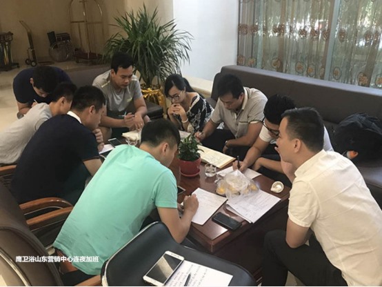 鷹衛(wèi)浴山東營銷中心營銷團隊的工作狀態(tài)是“180度精準營銷+360度全方位服務(wù)”,為什么叫180度精準營銷和360度全方位服務(wù),營銷總監(jiān)李超先生的釋義是這樣的:營銷是線性的,講究環(huán)環(huán)相扣,最終落實為行動,取得理想結(jié)果,這一條直線展開就一定需要成為最直接、最短、最有力的一條線,180度不能少一度也不能多一度;而服務(wù)要的就是沒有很周到,只有更周到,面面俱到最好,全覆蓋最佳,360度是一個最佳的狀態(tài),覆蓋所有服務(wù)面,同樣的,不能少一度也不能多一度。