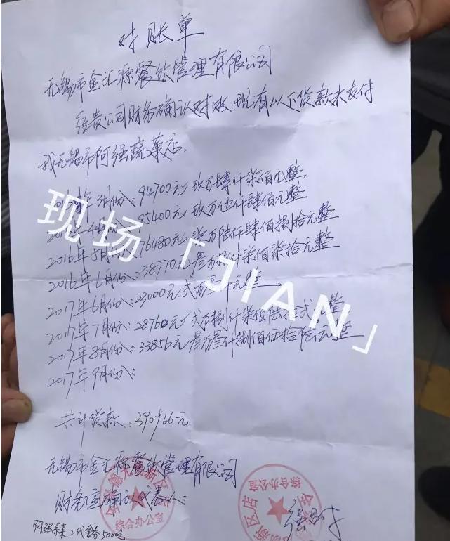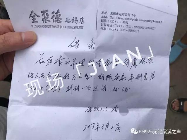 今天上午,有多位市民向【現(xiàn)場(chǎng)JIAN】反映,稱在無(wú)錫全聚德新區(qū)店門(mén)口聚集了眾多維權(quán)者,他們中有該店的工作人員、供貨商及普通客戶。原來(lái)是該店老板欠下高額債務(wù)后,于上周末失聯(lián)了,這可急煞了眾人。
