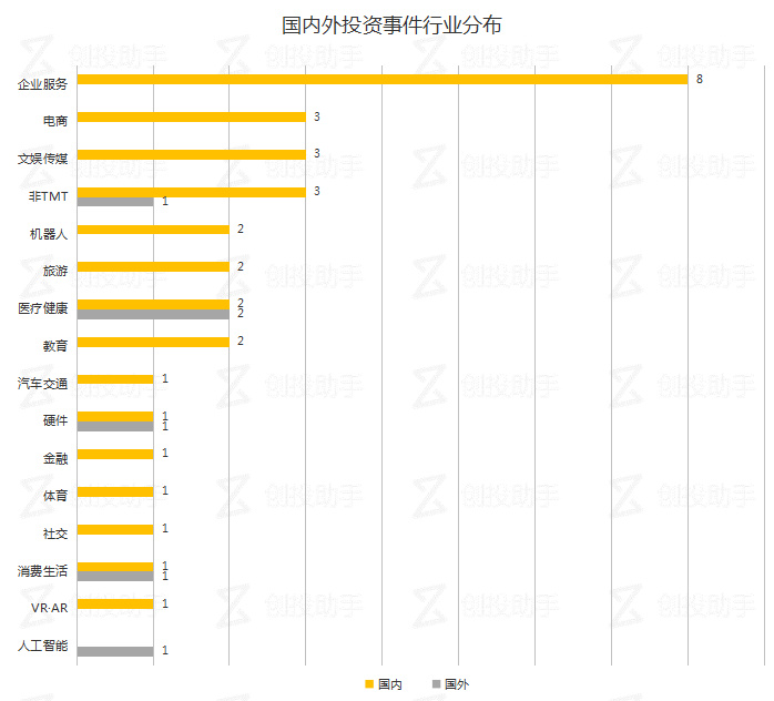 本日國內外共有38起融資事件,分布在16個行業(yè)中。國內32個項目獲得融資,國外6個項目獲得融資。