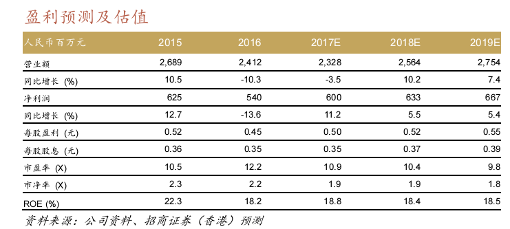 鑒于此,招商證券維持買入評(píng)級(jí),相當(dāng)于18年預(yù)測(cè)市盈率10倍和股息率7%。