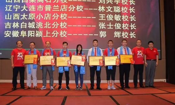 在本次818大會上,評選出了紅杉樹智能英語2017年度全國中、高考提分先進(jìn)校,全國優(yōu)秀課題示范基地獎(jiǎng),并為獲獎(jiǎng)分校送上了紅包、頒發(fā)授牌以及獻(xiàn)哈達(dá)。