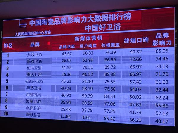 中國陶瓷品牌影響力大數(shù)據(jù)榜