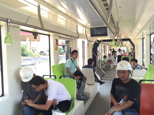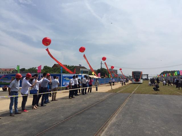 大楚網(wǎng)訊(記者 萬進(jìn) 通訊員 張惠榮 蘇丹丹 黃思思 林瑩)5月31日上午,武漢市首條現(xiàn)代有軌電車線路——大漢陽地區(qū)現(xiàn)代有軌電車試驗(yàn)線車輛“車都工匠號(hào)”,在武漢經(jīng)濟(jì)技術(shù)開發(fā)區(qū)的黃陵大道與門站路交匯處試跑,媒體記者和部分市民現(xiàn)場(chǎng)試乘“嘗鮮”。