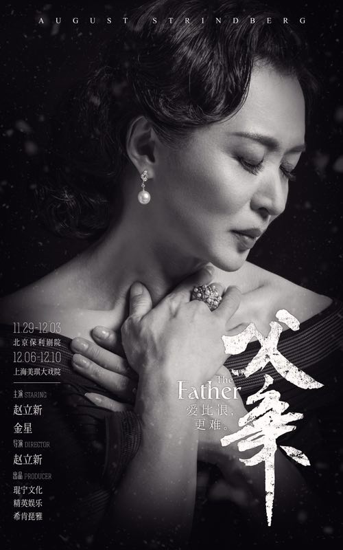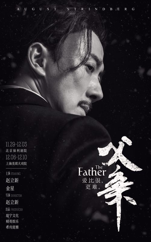 年度舞臺力作!由琨寧文化、精英娛樂、希肯琵雅共同投資,趙立新導演,趙立新和金星首度合作聯袂主演的瑞典現代文學奠基人、世界現代戲劇之父奧古斯特·斯特林堡名劇《父親》,將于11月29日至12月3日在北京保利劇院首演,12月6日至12月10日在上海美琪大戲院上演。即將開票,敬請期待!