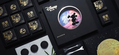 佰司卓快樂幻月月餅禮盒:經典迪士尼黑皮系列月餅,高端大氣的包裝禮盒,黑金設計點綴使米奇在煙花襯托下大放光彩。