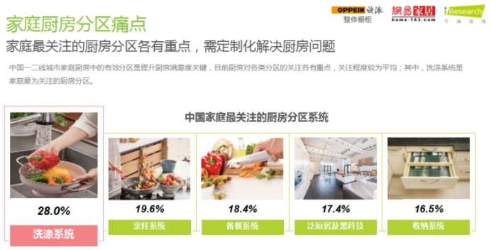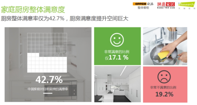 早在今年4月份,歐派櫥柜就聯(lián)合網(wǎng)易、艾瑞咨詢發(fā)起了“中國人的夢想廚房大調(diào)查”,深入了解中國家庭的廚房情況:中國家庭對廚房的滿意率42.7%,非常滿意的比例僅為17.1 %;