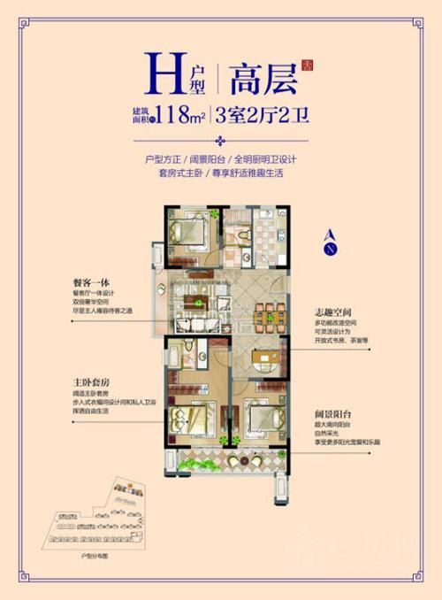 ·邊套B,3室2廳2衛(wèi),118平。餐廳、客廳一體設(shè)計(jì),雙倍空間,盡顯主人雍容待客之道。