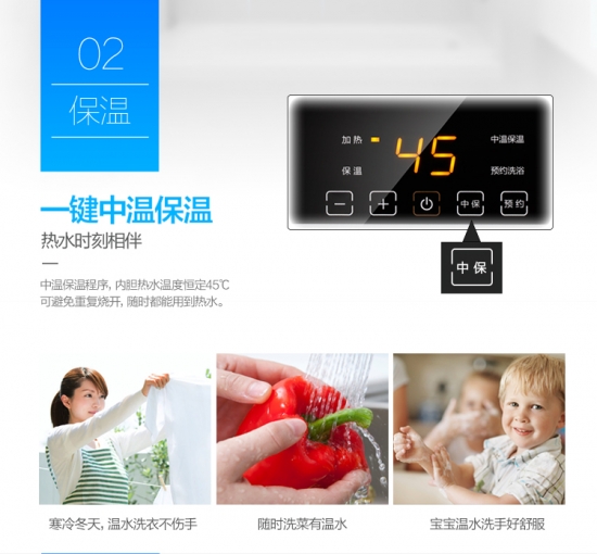 當(dāng)今社會(huì),健康最重要。而電熱水器常年使用無(wú)法清潔為人們皮膚帶來(lái)的危害,已經(jīng)令很多白領(lǐng)望而卻步。該款熱水器則不同,它擁有健康洗功能,獨(dú)有的抑菌系統(tǒng)讓肌膚也能喝上健康水。該功能可殺滅部分生物型病毒,且能有效阻擋細(xì)菌微生物,搭配排污口定時(shí)排污,可確保水質(zhì)潔凈,保障沐浴安全。