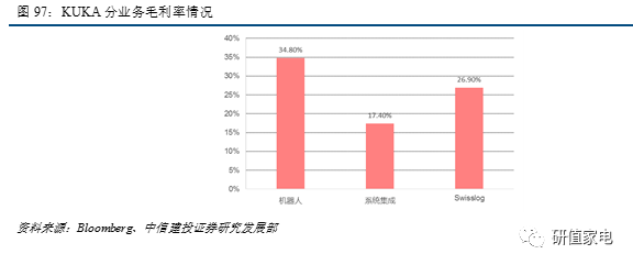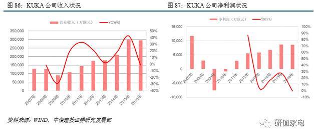 (1)KUKA作為汽車(chē)行業(yè)自動(dòng)化領(lǐng)導(dǎo)者,汽車(chē)行業(yè)收入占比約50%,但由于汽車(chē)企業(yè)作為下游客戶(hù)具備超強(qiáng)議價(jià)能力,壓縮了KUKA的利潤(rùn)空間。