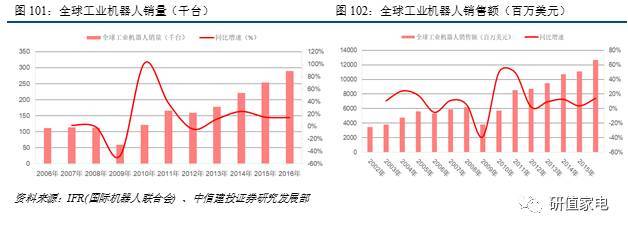 因此,在制造業(yè)面臨升級(jí)壓力和人口紅利消失的情況下,機(jī)器人成本的下降,加之人工成本的上升,使得“剪刀差”出現(xiàn),越來(lái)越多的行業(yè)將加快推進(jìn)“機(jī)器人替代人”的過(guò)程。工業(yè)機(jī)器人成為趨勢(shì)明朗的高確定性高成長(zhǎng)行業(yè),并具備長(zhǎng)久持續(xù)性。