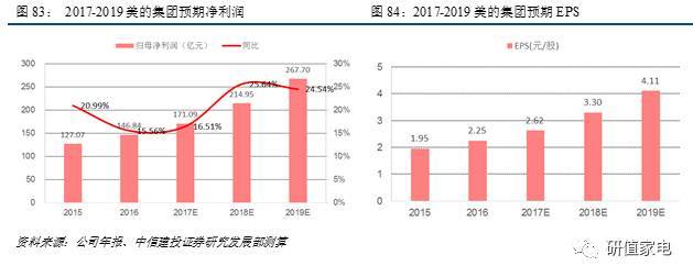 再考慮到KUKA集團(tuán)對(duì)美的集團(tuán)的協(xié)同作用所造成毛利率的提升,收購(gòu)KUKA集團(tuán)對(duì)美的集團(tuán)的綜合財(cái)務(wù)影響包括:預(yù)計(jì)2017-2019年,KUKA集團(tuán)帶來(lái)的綜合收入為260.3億、299.9億、351.1億人民幣;歸母凈利潤(rùn)22.7億、26.8億、31.9億人民幣,EPS提升0.35、0.42、0.49。并表后,2017-2019年美的集團(tuán)的凈利潤(rùn)為171.09億、214.95億、267.70億人民幣,三年復(fù)合增速22%以上;EPS為2.62、3.30、4.11。