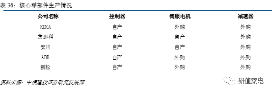由于庫(kù)卡是從下游焊接生產(chǎn)線開(kāi)始逐步發(fā)展出機(jī)器人產(chǎn)業(yè)的,其在核心零部件方面相較于安川、發(fā)那科略弱。控制器作為機(jī)器人的“大腦”,其控制算法決定機(jī)器人的性能,國(guó)際四大家族和國(guó)內(nèi)領(lǐng)先的機(jī)器人制造企業(yè)均實(shí)現(xiàn)了控制器的自產(chǎn)。