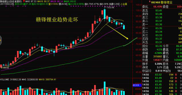 資金目前不在資源股、鋰電池短期不在這邊,資源股本周走得很弱,鋼鐵調(diào)了很多有資金拉中原特鋼和酒鋼宏興做反彈,尾盤(pán)也沒(méi)封住,屬于游資手法沒(méi)發(fā)帶動(dòng)整個(gè)板塊。這波資源股期貨那邊也調(diào)得多,得需要消化時(shí)間。下周有反彈,但力度有限,反彈資源股能走就先走,現(xiàn)在資金已經(jīng)不再這邊。鋰電池龍頭贛鋒鋰業(yè)尾盤(pán)還繼續(xù)殺跌,從走勢(shì)來(lái)看要奔60日均線去。