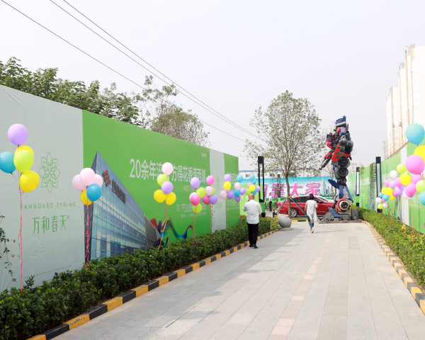 活動(dòng)開始前,萬和春天商業(yè)中心早已布置一新。大黃蜂、擎天柱超大機(jī)器人矗立在咨詢中心院落中央,綠色長(zhǎng)廊兩側(cè)掛滿了五彩繽紛的氫氣球,悉心準(zhǔn)備的精美冷餐正靜靜地等候客戶們的到來。