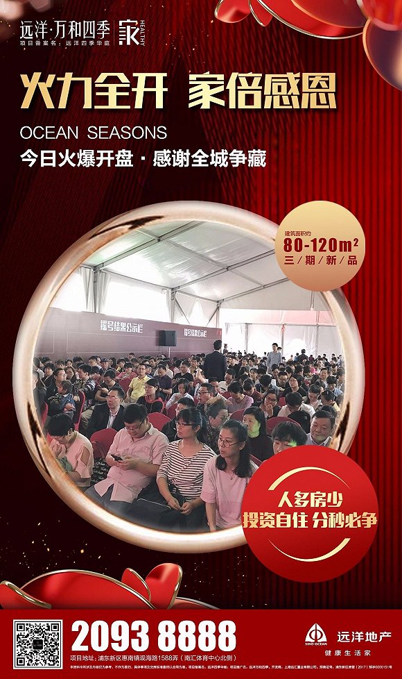 作為浦東惠南的人氣品質(zhì)大盤(pán)!遠(yuǎn)洋萬(wàn)和四季一直人氣高漲!建筑面積約80-120㎡三期新品,在眾多忠實(shí)用戶(hù)翹首以待中,終于在今天盛大開(kāi)盤(pán)!