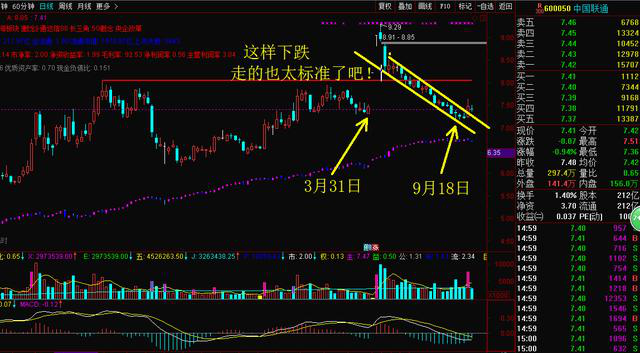 2、撤退的隊(duì)形太整齊了。看股價(jià)的下跌就好像一個(gè)人下班之后走樓梯下樓一樣,又整齊又有節(jié)奏,不慌不忙。一般情況下下跌入敗軍之將,潰不成軍。中國聯(lián)通的下跌形態(tài)更像是誘空,早晚會來個(gè)回馬槍。