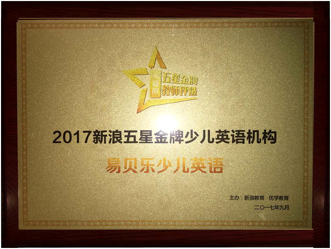 9月14日,第七屆“新浪五星金牌教師評選”頒獎典禮在北京舉行。易貝樂少兒英語在“2017新浪五星金牌教師評選”中,在以實(shí)力說話的現(xiàn)場教學(xué)比拼中脫穎而出,榮獲 “2017新浪五星金牌少兒英語機(jī)構(gòu)”殊榮,易貝樂參賽老師獲得“2017全國五星金牌教師”榮譽(yù)稱號。
