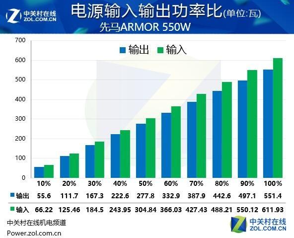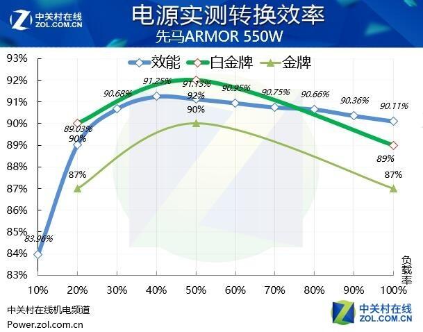 在實測轉(zhuǎn)換效率中,先馬ARMOR\u00A0550W電源有很好的表現(xiàn),產(chǎn)品通過了80\u00A0PLUS金牌認證,在實測中也達到了金牌標準,有很好的表現(xiàn)。